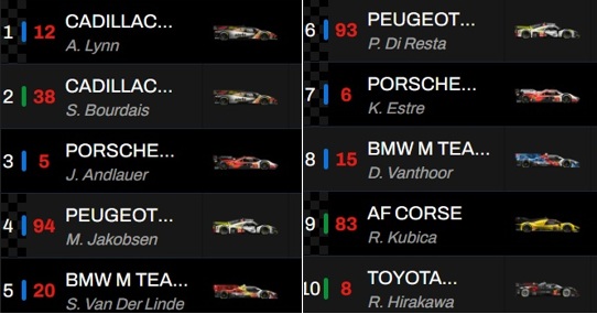 veja abaixo a qualificação final dos 10 carros que disputaram a Hyperpole da Hypercar: