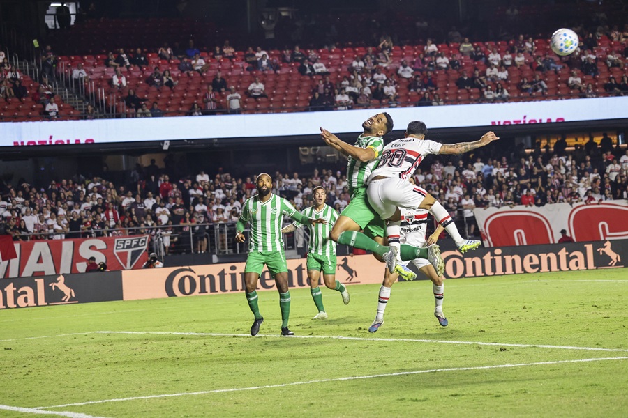 Aos 42 minutos da etapa final, após jogada na entrada da área do Juventude, Léo Índio desvia a bola com o braço e é marcado pênalti, com auxílio do VAR. Calleri bate e o goleiro Pedro Rocha se consagra com grande defesa. Lembrando que o arqueiro é reserva no Juventude e está substituindo o titular Jandrei, que não pode atuar por pertencer ao São Paulo.